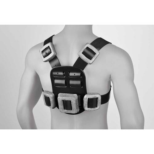 Sistema de lastre modular que permite utilizar desde 2 hasta 12 Kg repartidos en una gran zona del cuerpo.