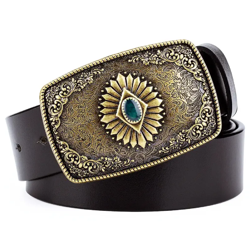 Nuestro CINTURÓN CON HEBILLA VAQUERA es más que un accesorio, es una celebración del espíritu del Oeste. Añade este accesorio a tu colección y disfruta de su aspecto atemporal en cualquier ocasión.