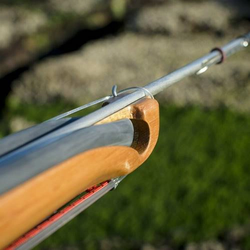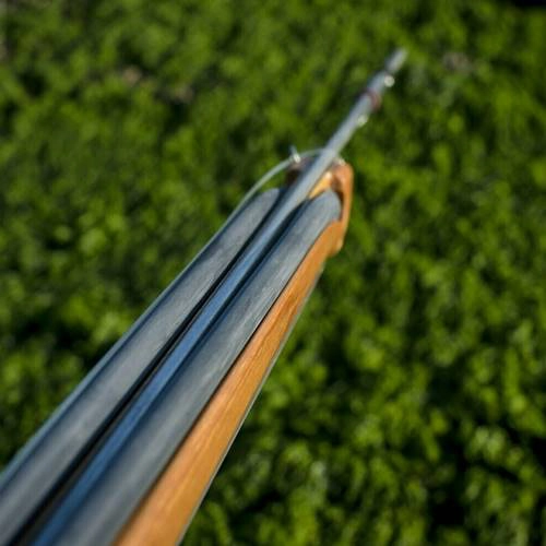 Hemos aumentado la sección del fuste y su masa consiguiendo con esto es darle mucha estabilidad con corrientes de mar, anular parcialmente el retroceso primario, incluso con más grosor de varilla, y dotarlo de una sorprendente inercia en los movimientos del arma.