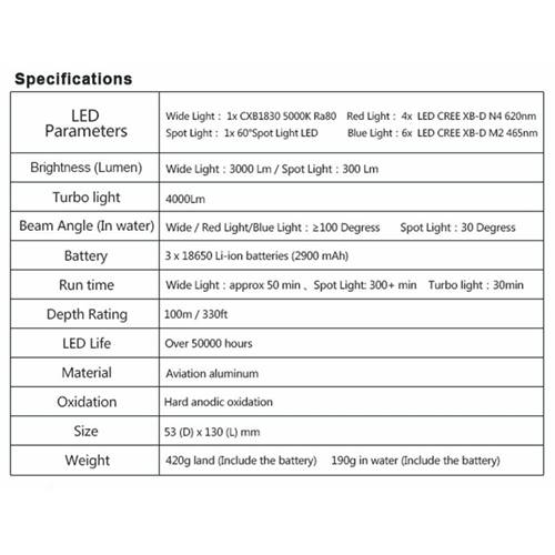 Linterna de buceo técnico Paulasub HI-MAX 3000.