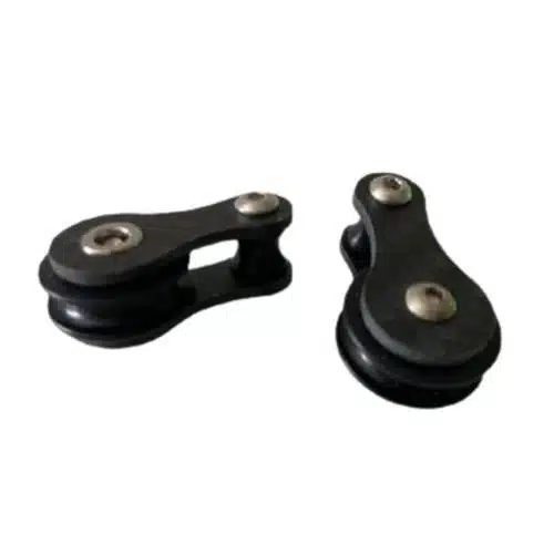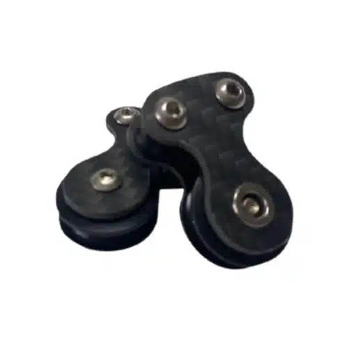 El tren de poleas está totalmente estudiado para que las gomas queden totalmente paralelas una vez cargadas en el soporte de carrete de Paulasub y así optimizar al máximo el tiro.