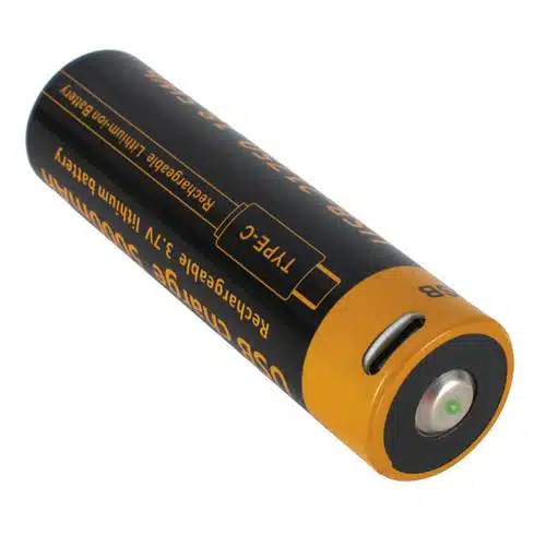Puede funcionar con batería 21750 recargable via USB-C directamente en la batería.