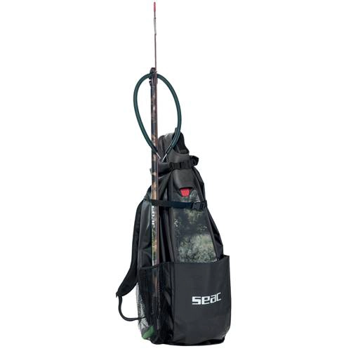 Mochila para llevar el equipo de pesca submarina a la espalda de la marca Seac Seal Camu 75L.