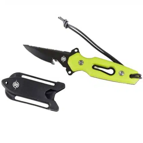 Cuchillo de pesca submarina Sigalsub Raptor de 7,5 cm de hoja recta en su versión mini y de hoja curva en su versión grande.
