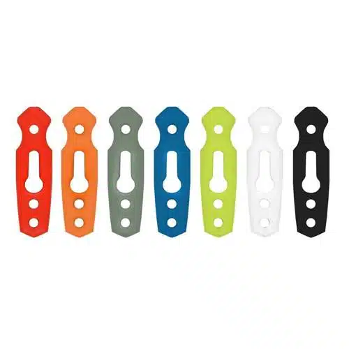 La funda de tecnopolímero se puede colocar en la pierna con las correas elásticas estándar o en el cinturón de lastre del pescador.