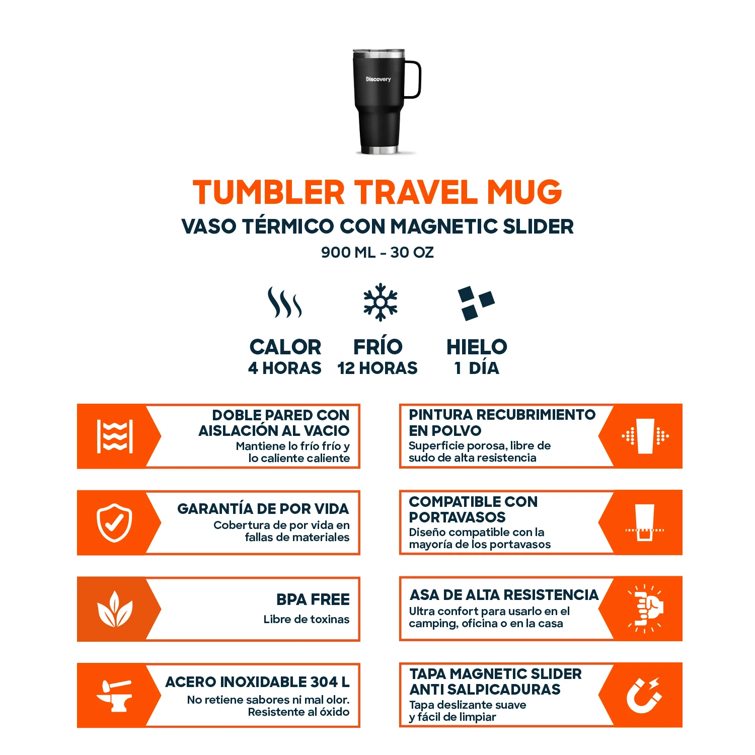 DOBLE PARED CON AISLACIÓN AL VACIO: Mantiene lo frío frío y lo caliente caliente
